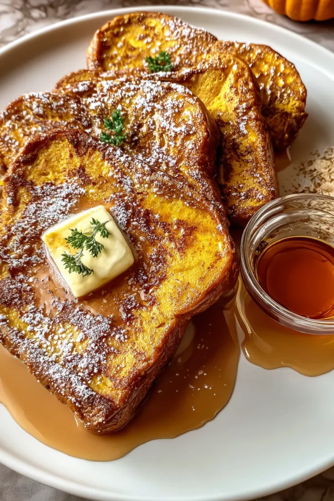 Presenting this Pumpkin French Toast on your table is like unwrapping a fall-themed present. Its gorgeous golden hue and dollops of melting cinnamon butter make it picture-perfect for sharing with loved ones. To elevate every element of the experience—from visuals to texture contrasts—consider these serving ideas that will take your brunch from “delicious” to “absolutely unforgettable.”