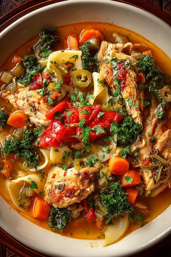 8. Serve the Spicy Sicilian Chicken Soup hot, garnished with fresh parsley or basil for a fragrant, colorful finish.
