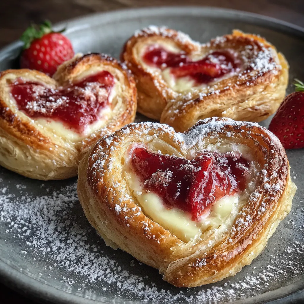 Baking Strawberry Cream Cheese Heart Danishes is a playful and straightforward process: a quick preheat, gentle rolling, and some simple mixing lead to flaky, golden wonders in under 30 minutes. You’ll shape the pastry, whip up a dreamy cream cheese filling, and nestle a dollop of juicy jam into the center of each heart. With an egg wash for browning and a sweet glaze to finish, these danishes come together in just a few steps—making them a go-to recipe when you want to impress without stress. Ready your ingredients and let’s dive into the detailed instructions below.